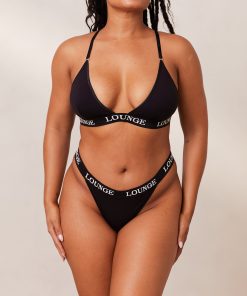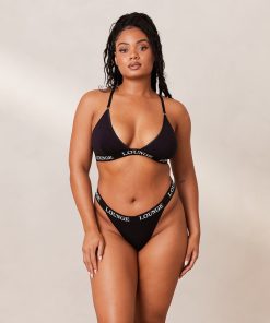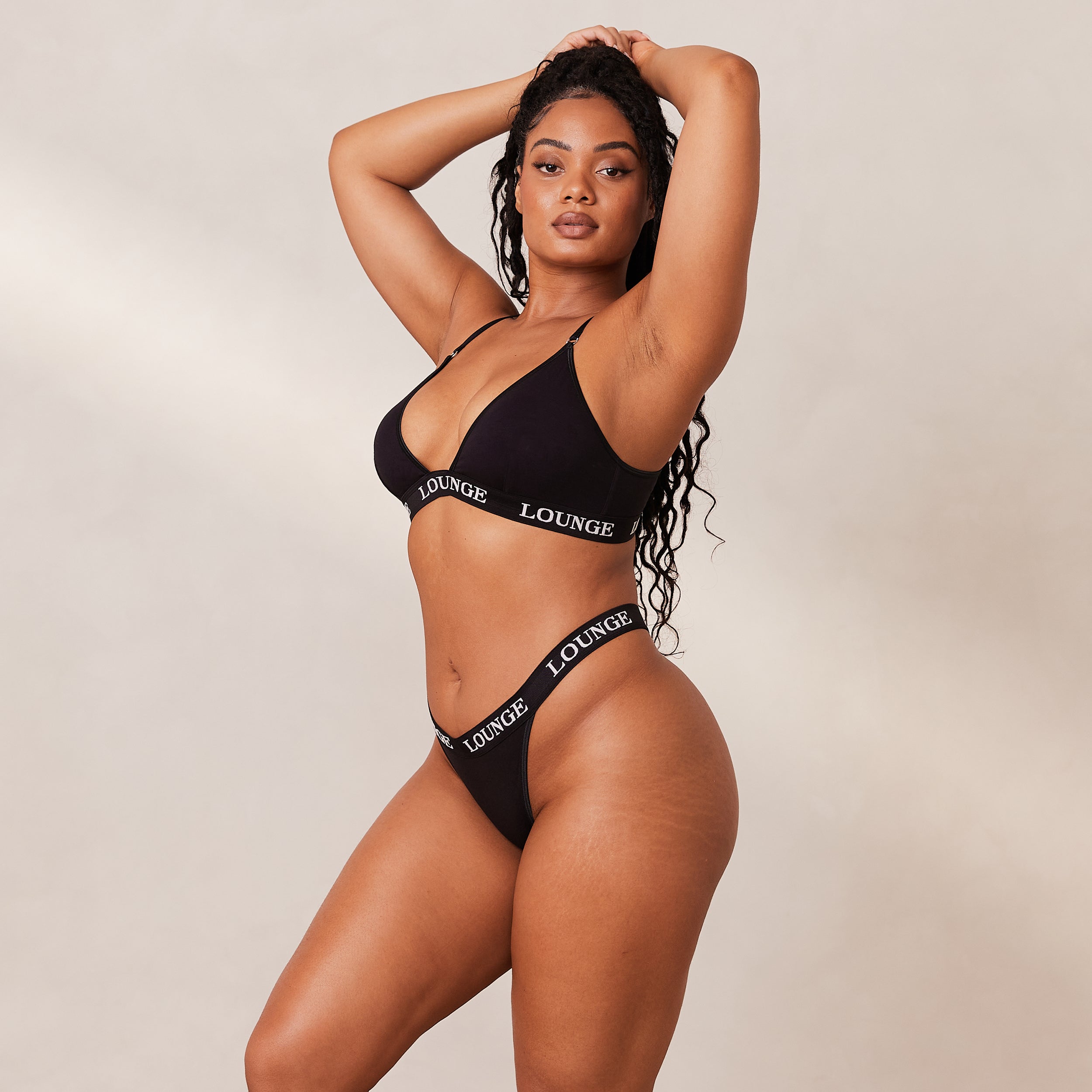 Lounge Women’s Bamboo Triangle Bra & Thong/briefs Set | All Black