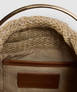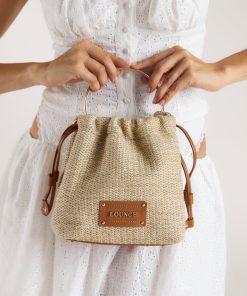 Raffia and tan leather fabrication mix Drawstring fastening Removable leather shoulder strap Full tumbled leather fabrication with light texture Simple textile internals Small interior pocket with branded leather tab Modern minimal metal ring handle Branded ‘L’ trim to drawstring strap Protective studs to base Leather tab with stud details and raised metal logo lettering Protective cotton dust bag included |The Al Fresco Collection marks the debut of The Bag Collection – a considered extension of our signature style beyond the body. u003cbru003e Our first-ever bag collection blends Lounge’s signature intimacy with elevated, everyday function, offering refined silhouettes crafted for movement, ease, and expression. Designed to complement the fluid femininity of our ready-to-wear, each piece is a quiet statement: soft, structured, and endlessly wearable. This is Lounge, reimagined – worn your way, wherever the day takes you.