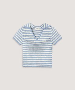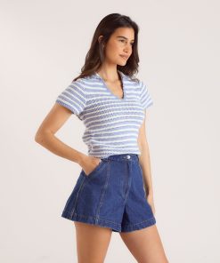 Lounge Women’s Crochet Polo Top | Blue Stripe