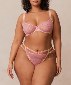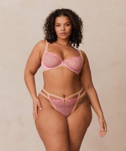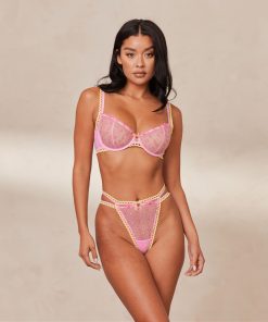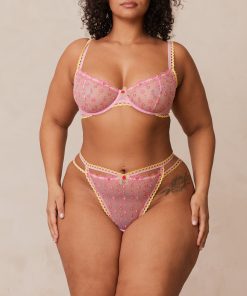 Lounge Women’s Daisy Embroidered Balcony Bra & Thong/briefs Set | Pink