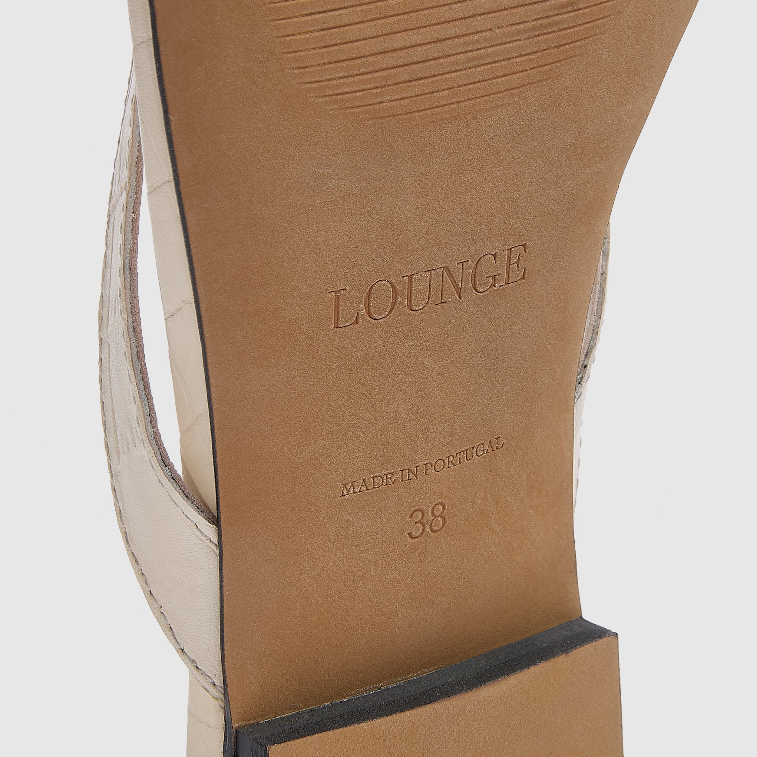 Minimal, chic flip flop Contemporary square-toe shape Full leather upper Full leather insock Croc embossed detail Mini ‘L’ pin Foil Lounge logo to insock Engraved Lounge logo to sole Ultra-soft premium tunit sole Peached sole Subtle padded insock Anti-slip texture to sole |Step into a new season with the British Garden Collection. This collection celebrates the best of British fashion design, with whimsical takes on trending shapes. Now, with the addition of footwear, you can create a complete Lounge outfit from head to toe. Handcrafted in Portugal with premium embossed leather, Brielle is a flip flop you won’t want to take off. No detail goes unnoticed: the subtle padding to the insole offers all-day comfort, while the miniature logo pin elevates this minimalistic piece to a chic, wearable summer staple. Crafted for comfort and built to last, each piece in our Footwear Collection is handmade in Portugal using premium genuine leather and high-quality hardware. From soft, cushioned insoles to advanced anti-slip soles, every detail blends tradition, innovation, and timeless style.