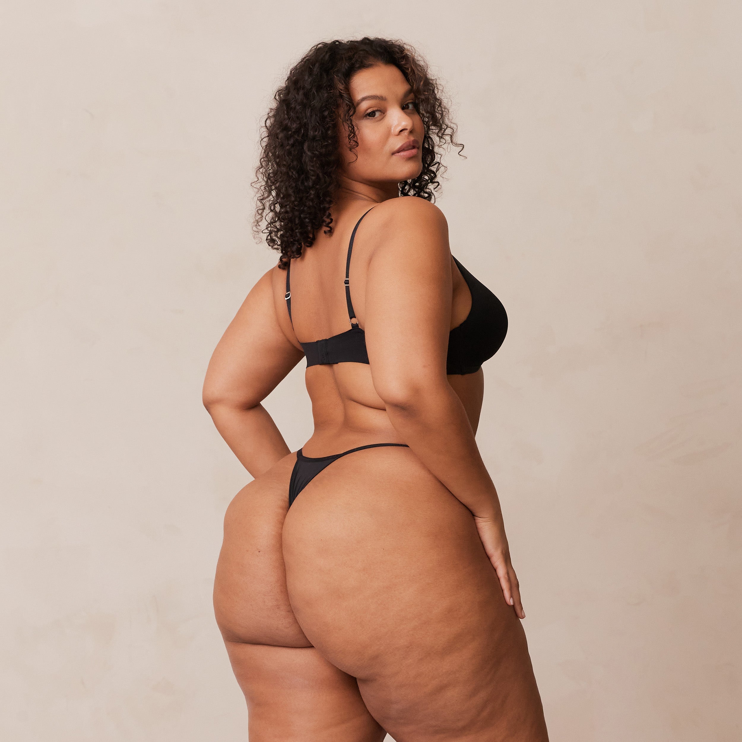 Non-wired bra, foam cup Super soft micro fibre fabrication, with seam free wings Elasticated Lounge branded straps Hook and eye fastening Silver Lounge hardware 79% Recycled Polyamide, 21% Elastane Introducing our Light Non-Wire Plunge Set. Featuring a soft smooth fabric and non-wired foam cup, this set will have you Lounging in comfort all day.