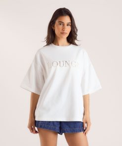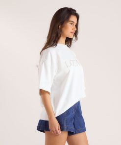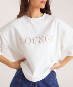 Lounge Women’s Oversized Lace Appliqué T-shirt | White