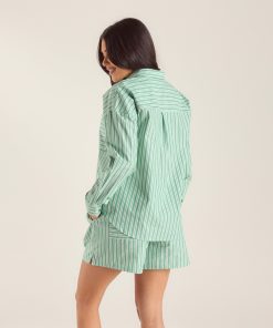 Lounge Women’s Oversized Pinstripe Shirt | Green