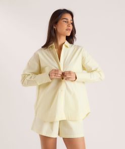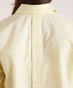 Oversized shirt Tapered sleeves Printed stripe Drop-shoulder design Wide cuffs with contrast stripe Yoke to back Collar Curved hem Wide turn-back hem Button fastening with logo engraving Button details to cuffs and to rear |Get inspired by this curated style guide to create the perfect look|The Dust and Daisies Collection celebrates unapologetic individuality and the art of self-expression. This collection of western-inspired clothing seamlessly blends oversized and fitted shapes, creating effortlessly flattering outfits.The Oversized Striped Shirt is a summer essential. The unique button detailing to the front and back of the shirt makes this a breathable, wearable piece that belongs in every wardrobe this season.