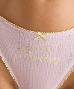 Soft stretch pointelle printed fabrication Embroidered Lounge logo and day of the week Picot elastic detail Multipack bottoms are not included in the bottoms offer.|The Spring Daze Collection embodies the turn of a season and the transition to a colourful springtime wardrobe. With wearable pieces in seasonal shades, nothing says ‘spring’ quite like this collection. The Days of the Week Bottoms Multipack features seven unique thongs, each with elegant embroidery and dainty elastic trims.