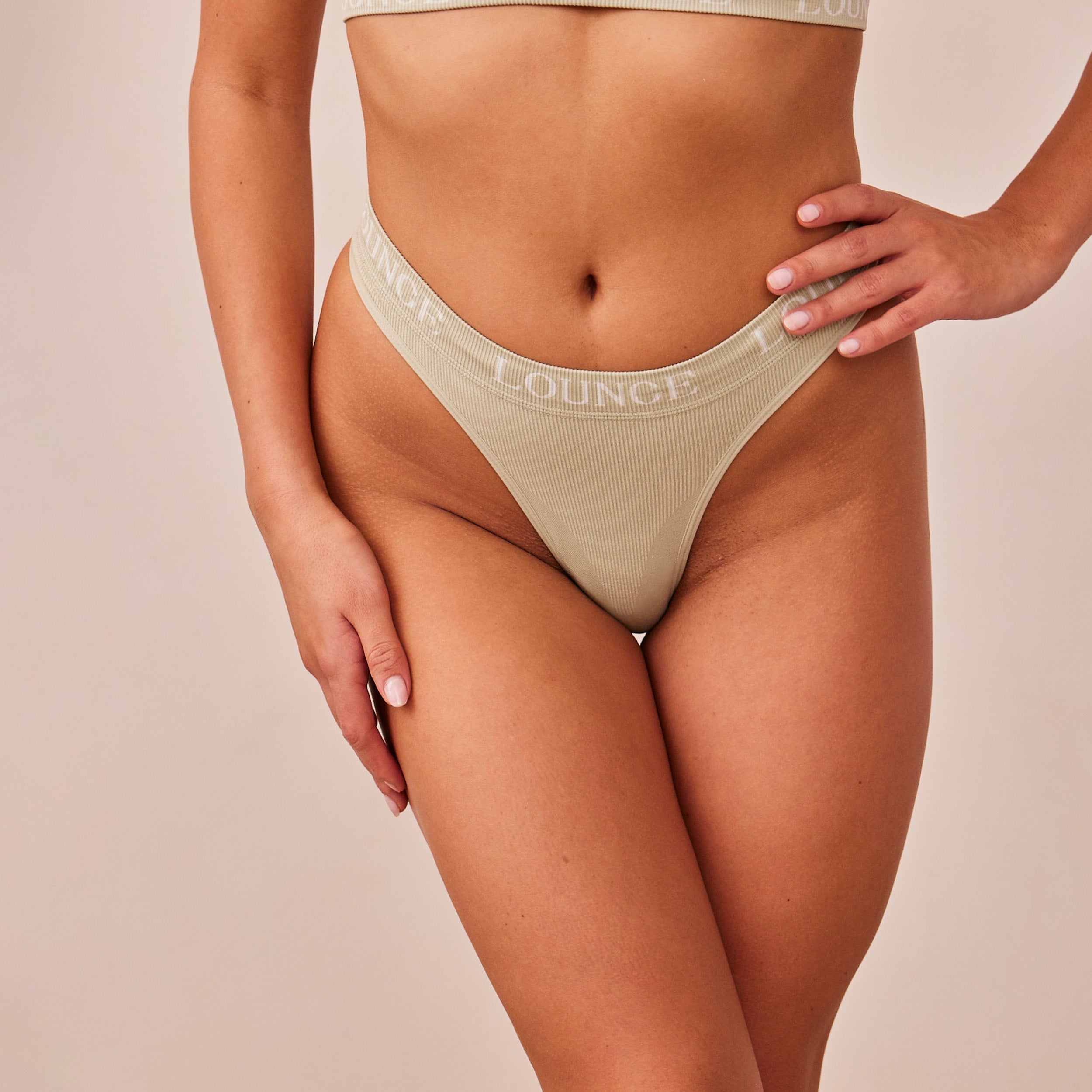 Seamless knitted technology Lounge branded banner 59% Recycled Polyamide, 28% Polyamide, 11% Elastane, 2% Polyester Embrace Comfort Made Sexy in our Seamless Thong. Designed with a gorgeous cut out detail on the centre back and a super soft, knitted high stretch fabric for a beautifully fitted shaped. Lounge in luxury, the sustainable way.