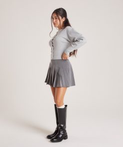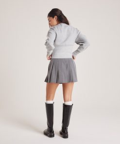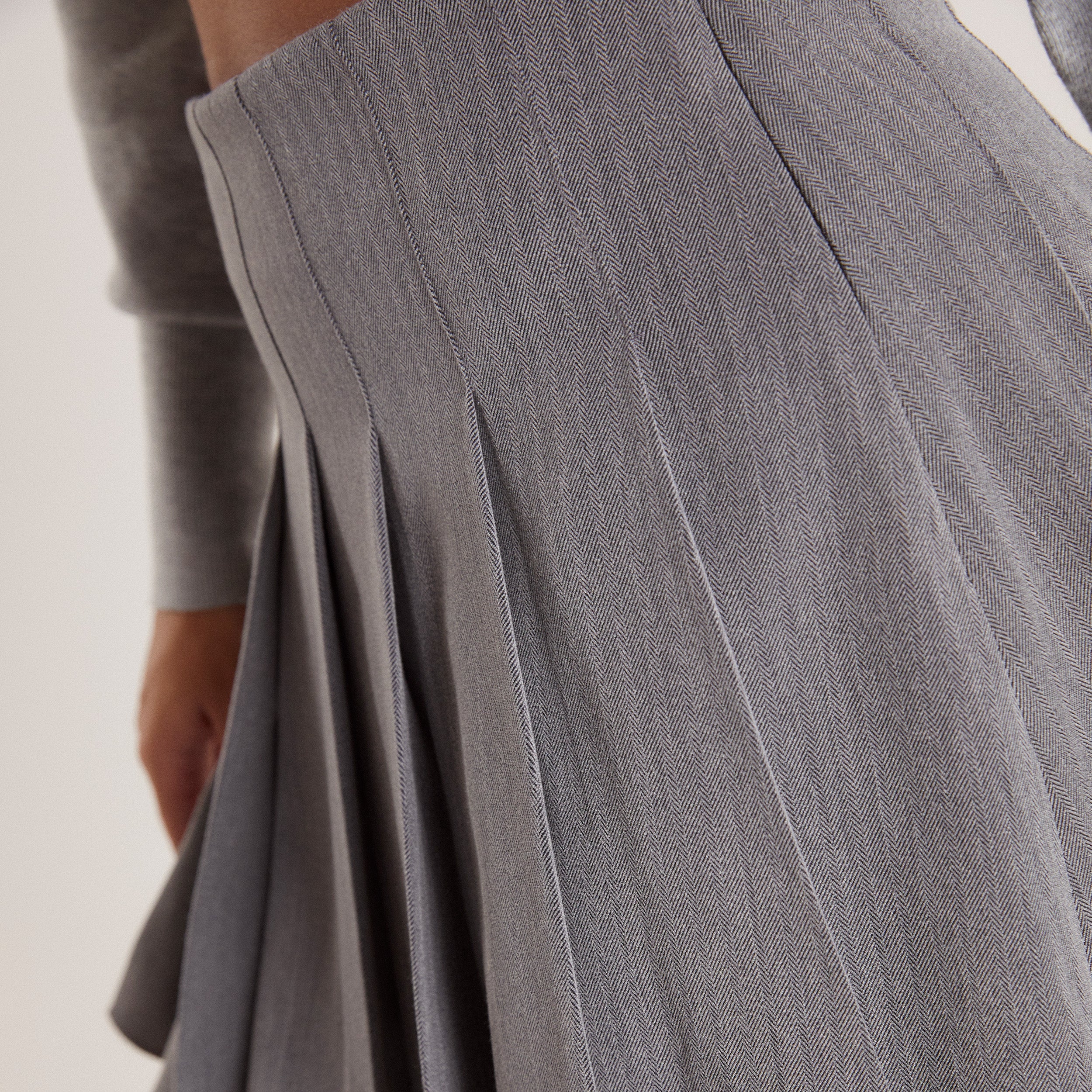 Pleated mini-skirt Invisible side zip Subtle herringbone pattern to fabric Hidden in-seam taping with repeated Lounge logo branding to waist