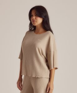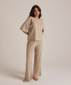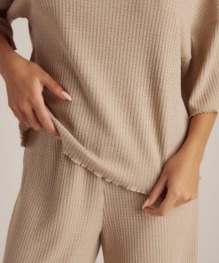 Lightweight oversized waffle fabrication with frilly edging Embroidered Lounge logo Add a touch of luxury to your nightly routine with this beautifully soft pajama top. The oversized fit and stretch of the fabric are guaranteed to give you the best night’s sleep of your life.