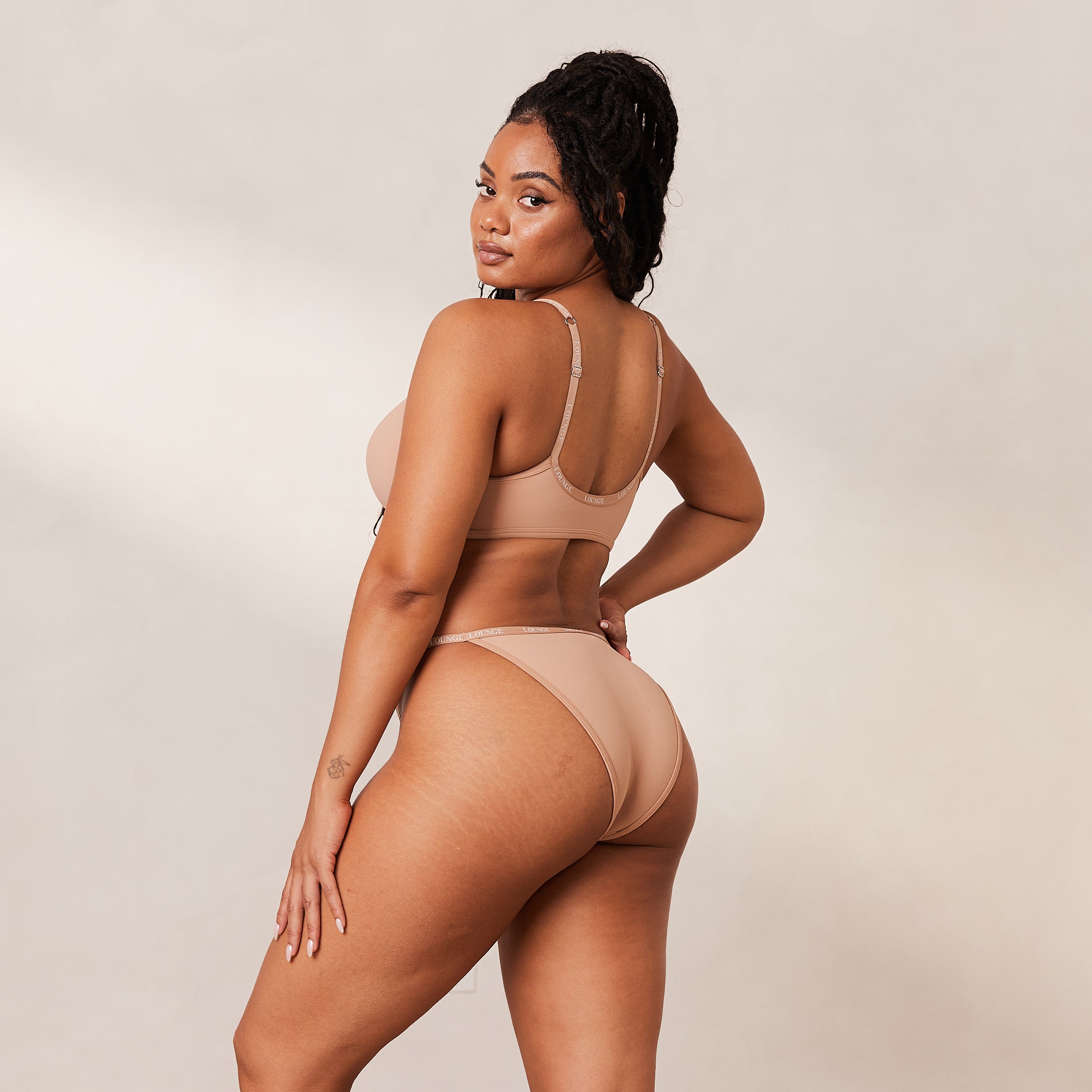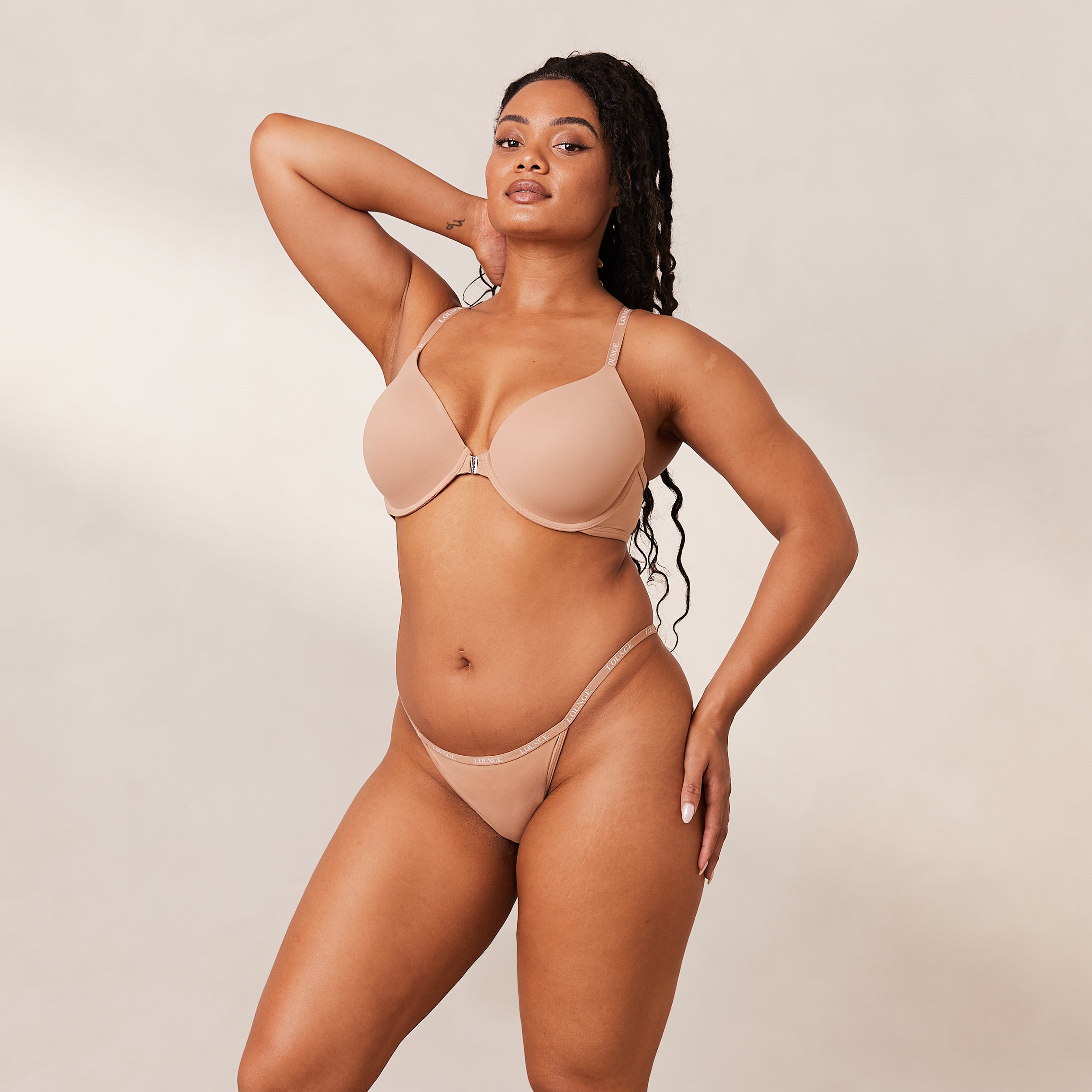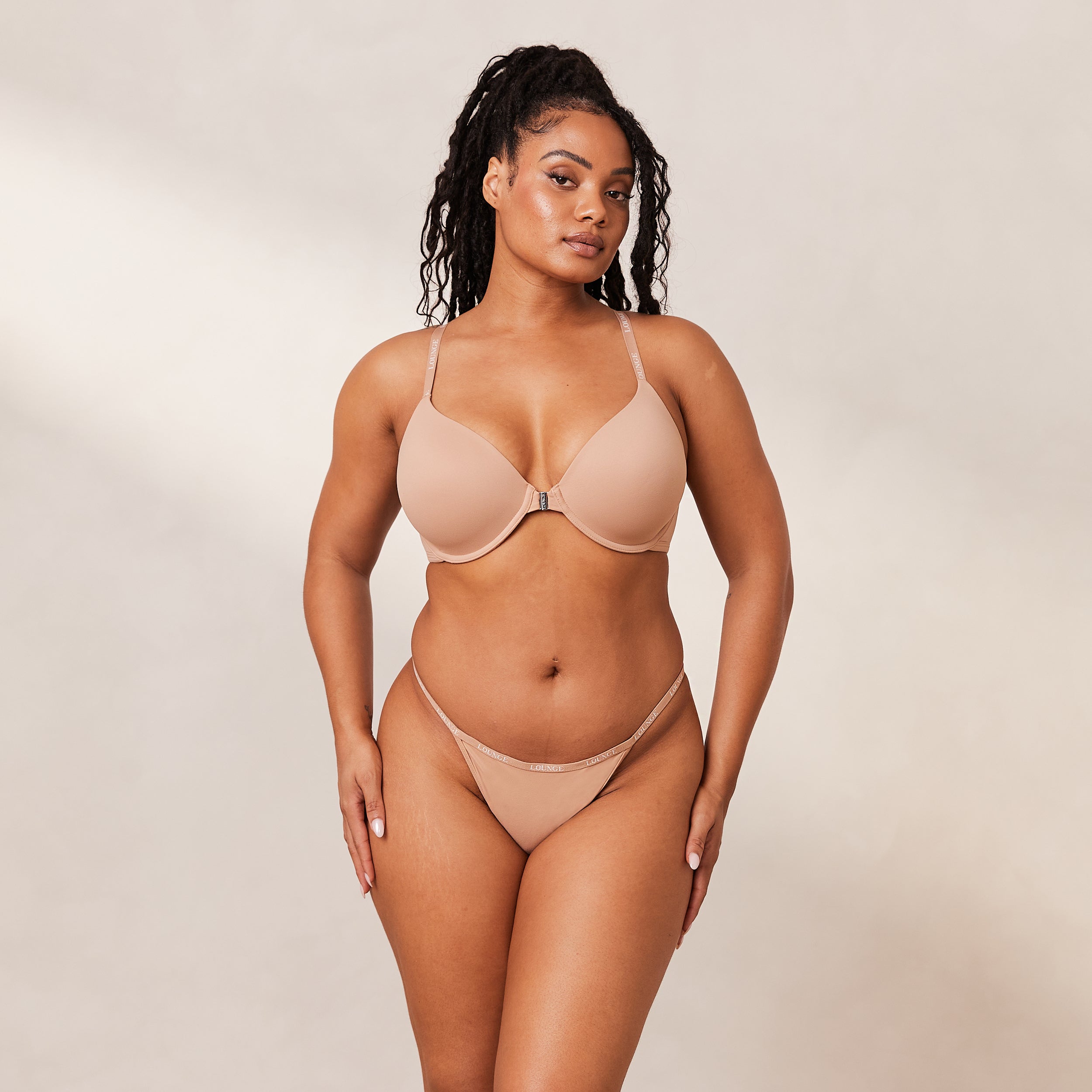 Underwired bra with foam cups Smooth brushed fabrication Lounge branded straps to bra and waist Silver front fastening clasp with debossed Lounge Silver Lounge hardware 80% Recycled Nylon, 20% Elastane Our Smooth Front Fastening T-Shirt Bra Set is designed to bring comfort into your everyday. Featuring a silver front fastening clasp, minimal branding and beautifully smooth fabric, it’s hard not to fall in love with this must-have Lounge style.