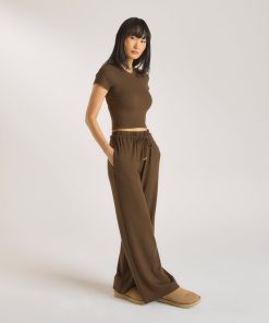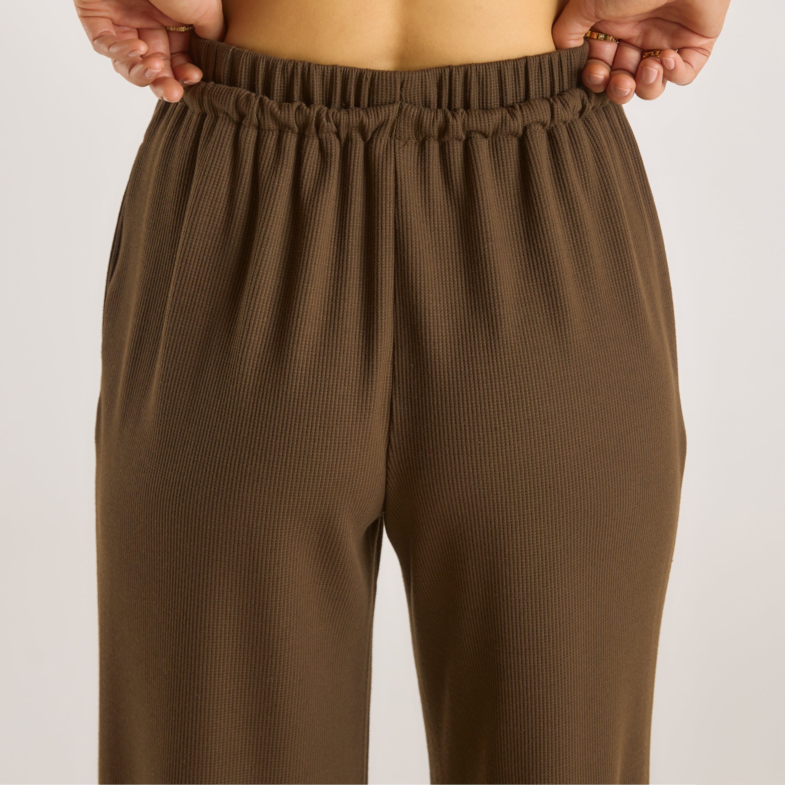 Wide-leg trousers with elasticated drawstring waist Stretch waffle fabrication Brushed gold metal aglet with minimal logo branding 2 side pockets |The Debut is a collection of tailored clothing designed to bring a flair of modernity to traditional shapes. Discover staple pieces that slot effortlessly into any wardrobe, with each piece crafted for quality, fit, and longevity. Lounge is now worn to be seen. u003c/bru003e Contour fashion makes way for high fashion with the introduction of the Waffle Wide-Leg Pants. These beautifully soft trousers are thoughtfully designed, with subtle branding and accents that are unmistakably Lounge.