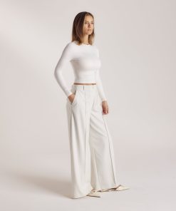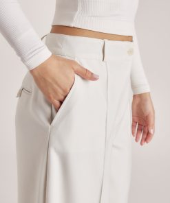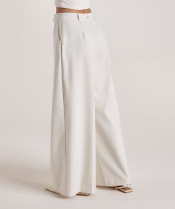 High-waisted, wide-leg tailored pants Belt loops around waistline Logo-engraved buttons Hidden in-seam taping with repeated Lounge logo branding to waist Side pockets Faux pocket to back with button detail Centre-front zipper